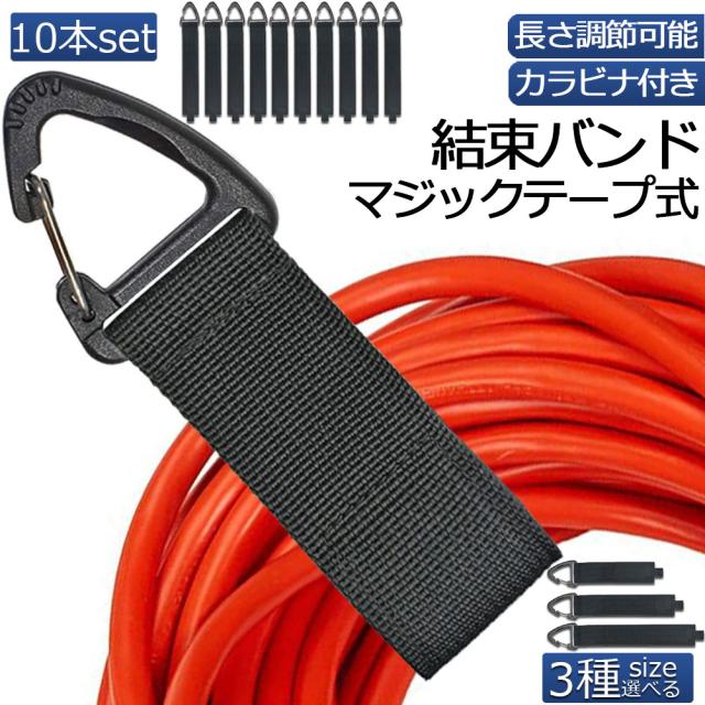 結束バンド ケーブル結束バンド マジック式結束バンド 10本セット 3サイズ選べる バンド 収納 ケーブルホルダー ストラップ 延長コード 収納バンド コードホルダー ケーブルまとめ 荷締めベルト 固定ベルト カラビナ タイプ 壁取付