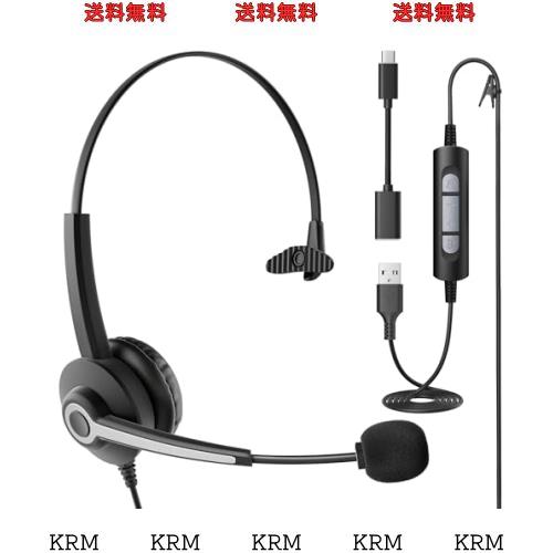 Wantek ヘッドセット USB Type-C 片耳 ノイズキャンセリングマイク付き コールセンター ヘッドセット Skype、Web会議、コールセンター、