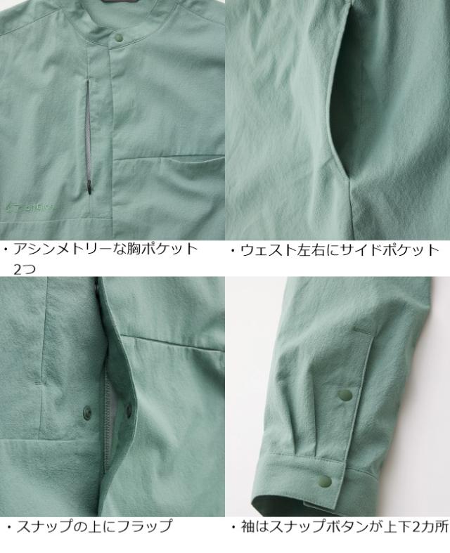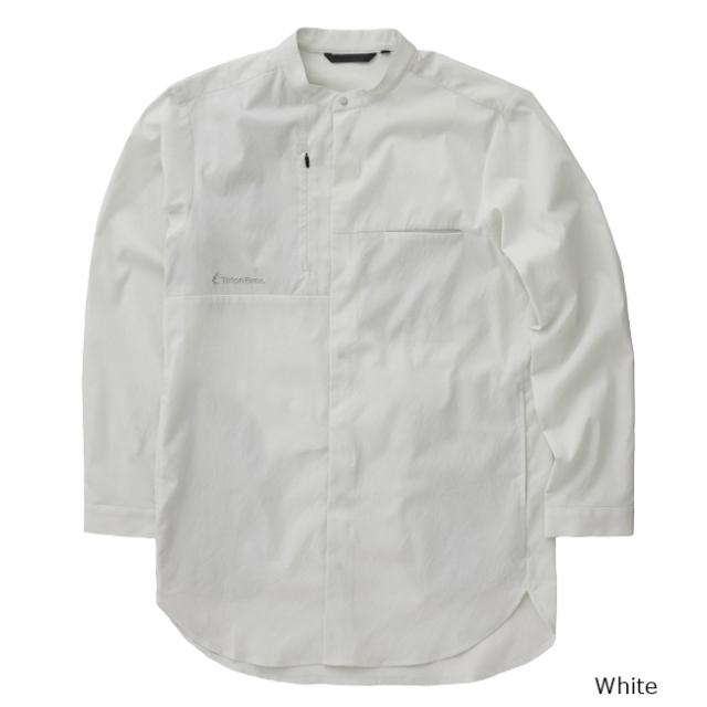 一見、プレーンで品良くまとまったロングシャツですが、それを機能的素材で創るのがTeton Bros.流。素材は通気性に優れた東レの「DotAir」の新作。麻調のリサイクル糸を縦糸に使うことで生まれた細かい凹凸感によって、汗をかいてもベタつかず、軽々としたナチュラルな風合いの生地に仕上がっています。