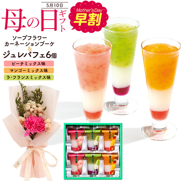 母の日ギフト ジュレパフェ & ソープフラワー カーネーション お菓子とお花セット 石鹸のお花とスイーツセット お菓子 ゼリー ドライフラワー フルーツゼリー 洋菓子 造花 洋菓子 贈り物 花とセット 常温 中島大祥堂 Hitotoe 柔らかい 人気プレゼント 予約 早割 送料無料