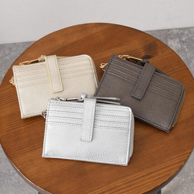 新作 パールシュリンク チェーンストラップ付き フラグメントケース レディース ミニウォレット ミニ財布 パスケース 定期入れ カード入れ カードケース おしゃれ かわいい メタリック 小銭入れ 札 収納 コンパクト