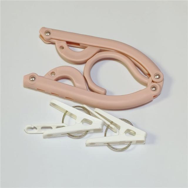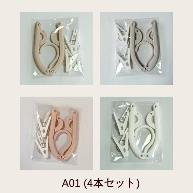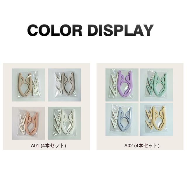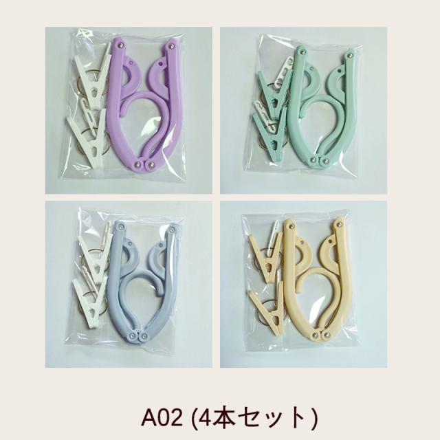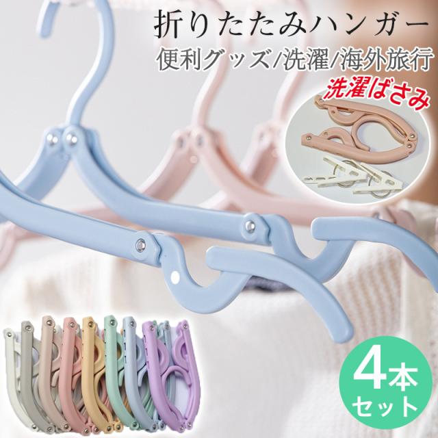 折りたたみハンガー 携帯用 4本セット 旅行 トラベルグッズ ハンガー 物干し 出張 携帯 折り畳み 洗濯ばさみ付き 軽量 4色 アウトドア キャンプ