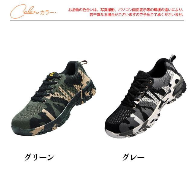 安全靴 スニーカー メンズ 鋼先芯入れ つま先保護 メッシュ 迷彩柄 レディース セーフティー 滑り止め 低反発 防臭 作業靴 通気性 現場 快適