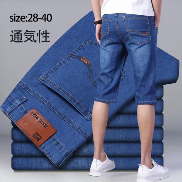 デニムパンツ ジーンズ ハーフパンツ メンズ 短パン ショートパンツ 7分丈 ストレッチ スリム 無地 通気性 カジュアル ストリート系 おしゃれ