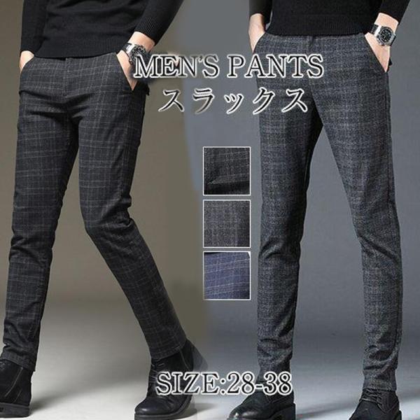 チノパン メンズ スラックス スリムパンツ チェック柄パンツ ストレッチパンツ スリム カジュアルパンツ スキニーパンツ 美脚 細身 秋 新作