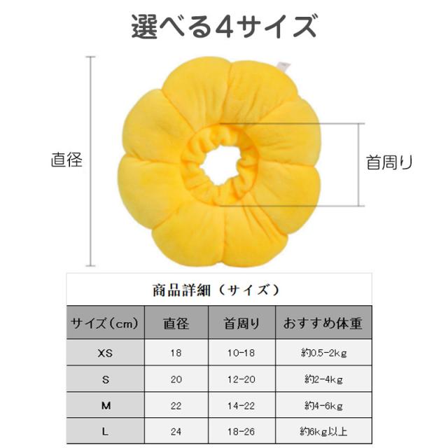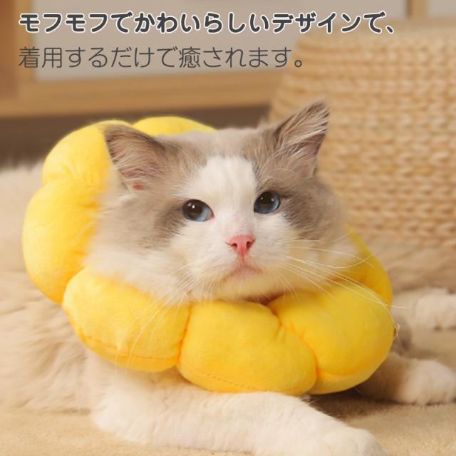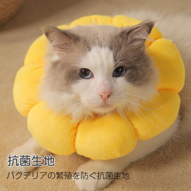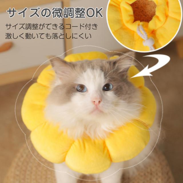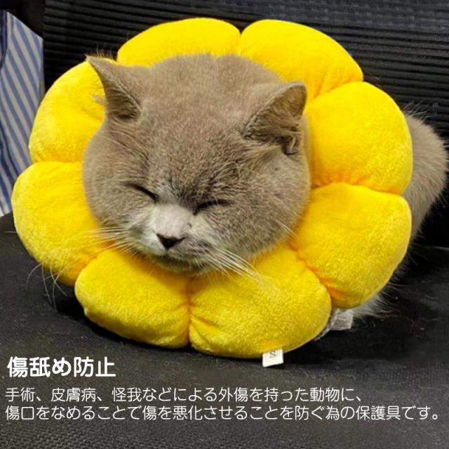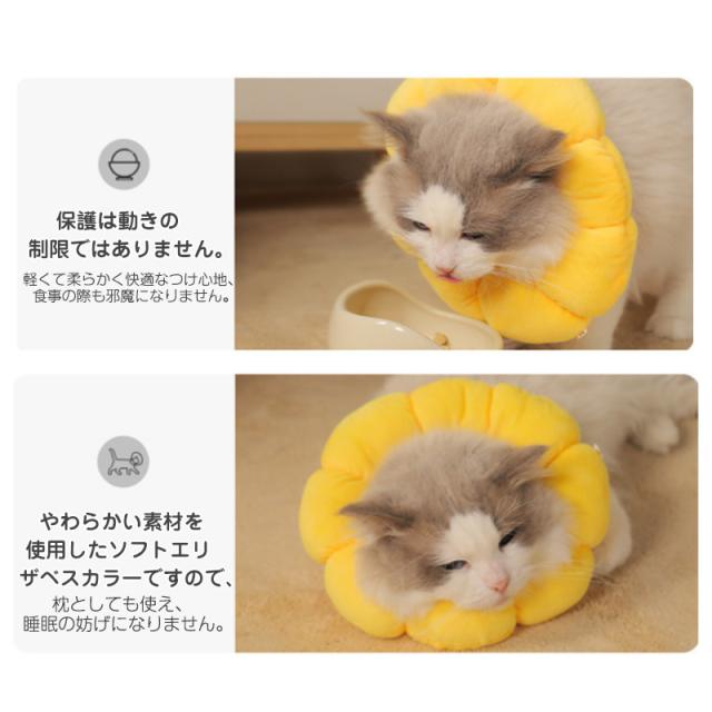 エリザベスカラー 犬 猫 ソフト 小型犬 猫用 ストレス軽減 傷舐め防止 軽い クッション サイズ調整 術後服 怪我 柔らかい 着脱可能 枕 ひまわり