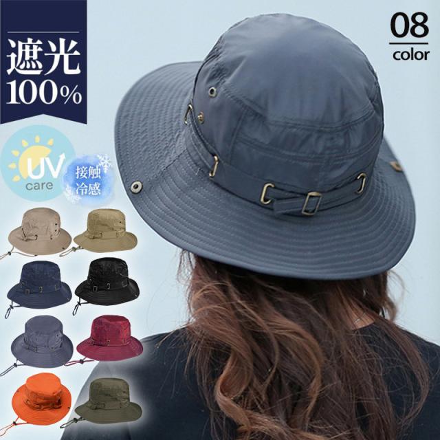 帽子 レディース UVカット ひも付き つば広 サファリハット サマーハット サンバイザー ミリタリー アドベンチャーハット 大きめ UV対策 自転車