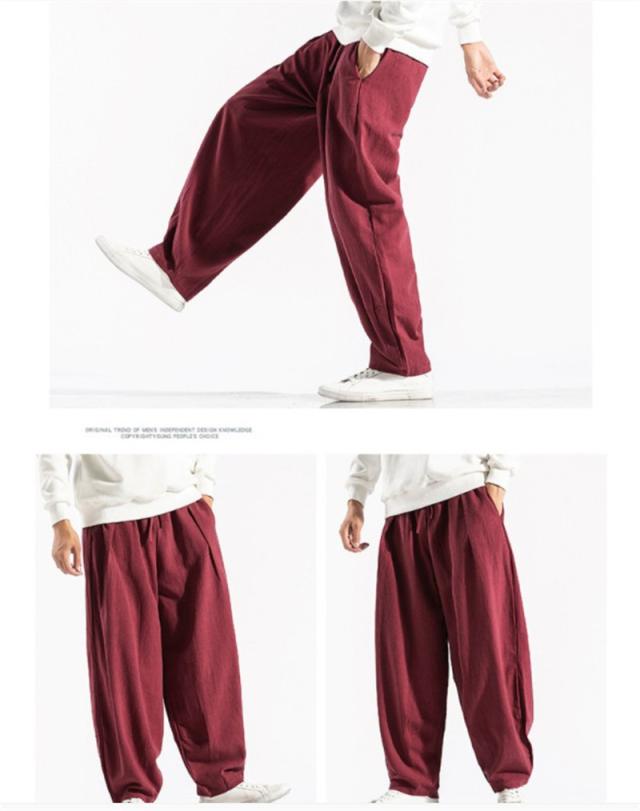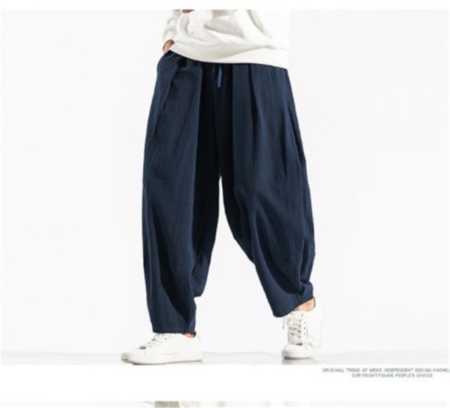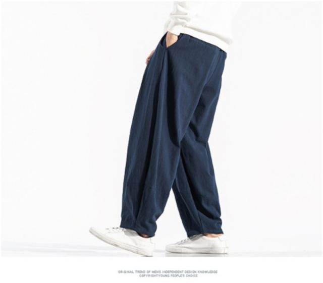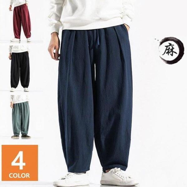 綿麻パンツ ワイドパンツ メンズ リネンパンツ チノパン テーパードパンツ 無地 ロックパンツ イージーパンツ ゆったり 涼しい カジュアル おしゃれ