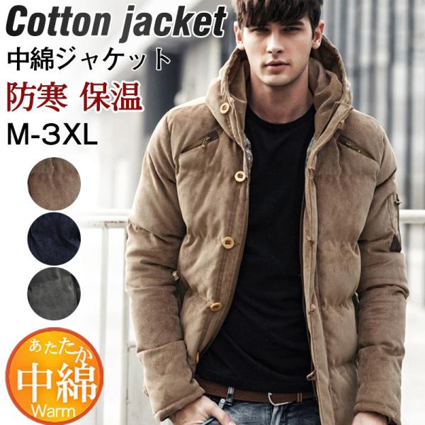 中綿ジャケット メンズ ダウンコート 厚手ジャケット フード付き 中綿コート ブルゾン アウター コーデュロイ 防寒着 暖か 男性 秋冬 かっこいい