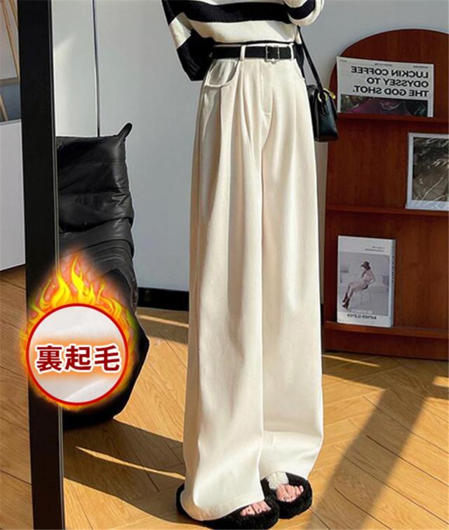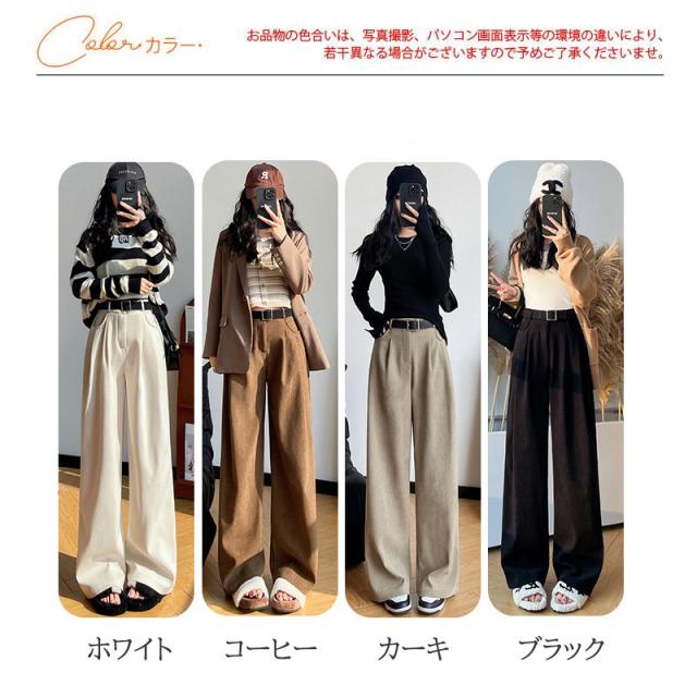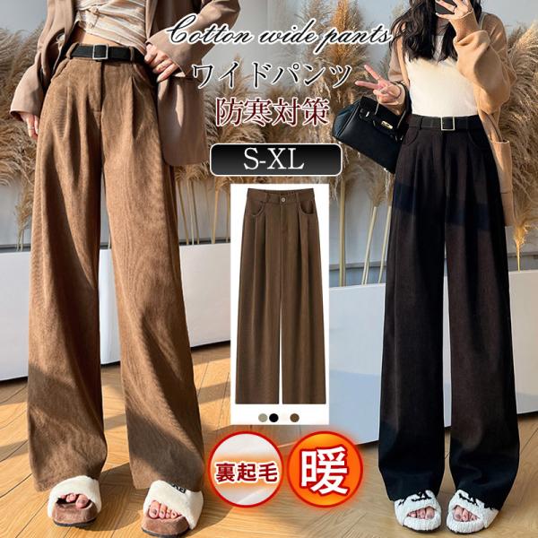 ワイドパンツ レディース 裏起毛 ストレート チノパン スラックス ガウチョパンツ ハイウエスト ゆったり ルーズ 防寒 着痩 冬服 暖か 通勤 通学