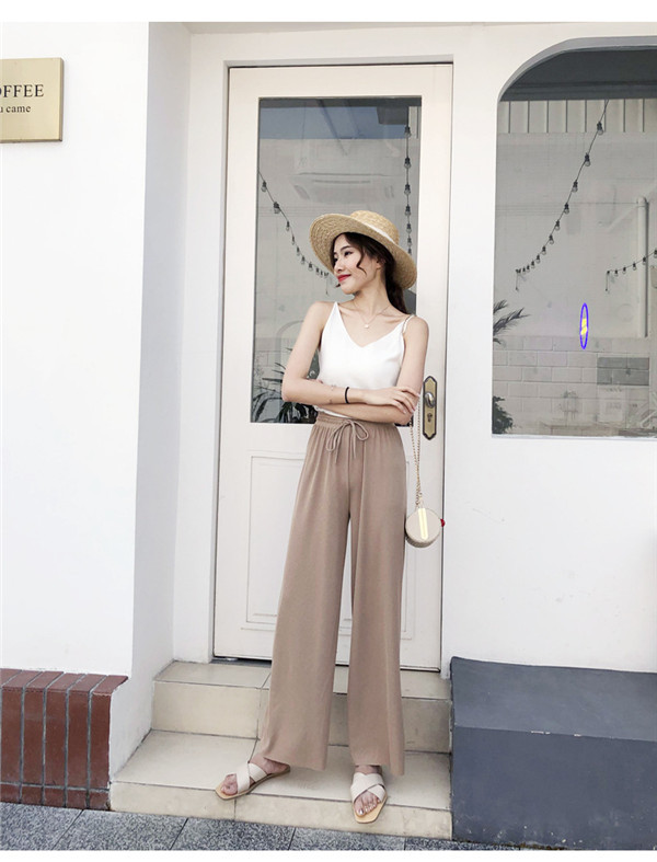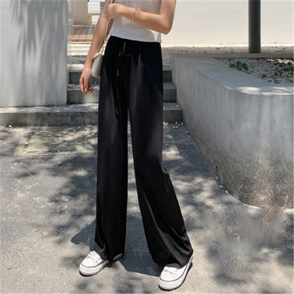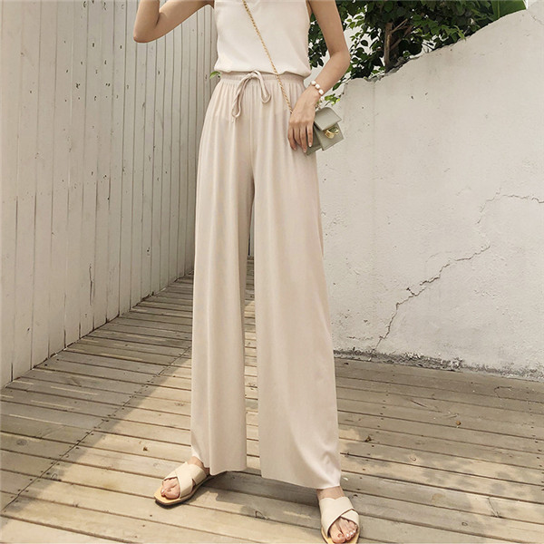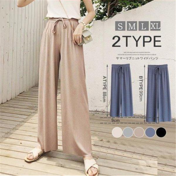 ワイドパンツ リブ レディース サマー 秋新作 ズボン 紐付き リブニット ストレッチ ボトムス ルームウエア ゆったり イージーパンツ おしゃれ 無地