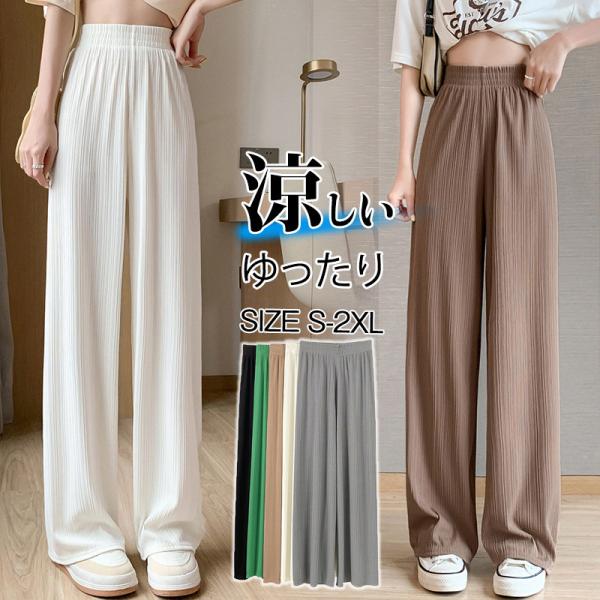 ワイドパンツ レディース プリーツパンツ ロング ガウチョパンツ 接触冷感 ハイウエスト イージーパンツ ゆったり スリム 薄手 美脚 春夏 通勤