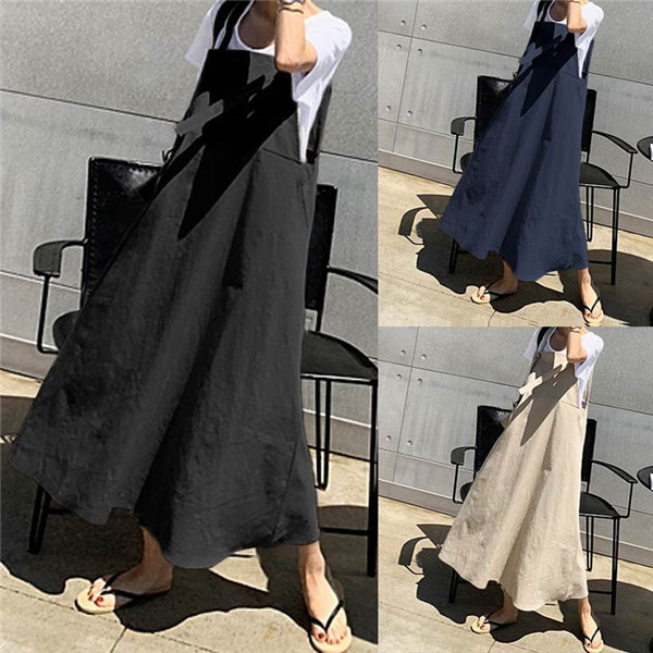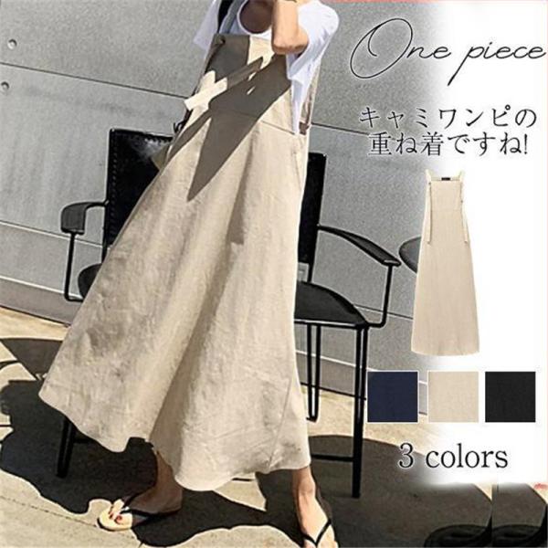 ワンピース レディース サロペット マキシワンピース オールインワン 綿麻 キャミワンピース ジャンパースカート 重ね着 無地 ゆったり 着痩せ