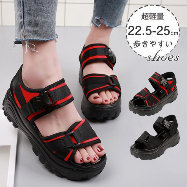 サンダル レディース スポーツサンダル 厚底 マジックテープ ストラップ 通気性 カジュアル 歩きやすい 美脚 疲れない シンプル 夏 韓国風 可愛い