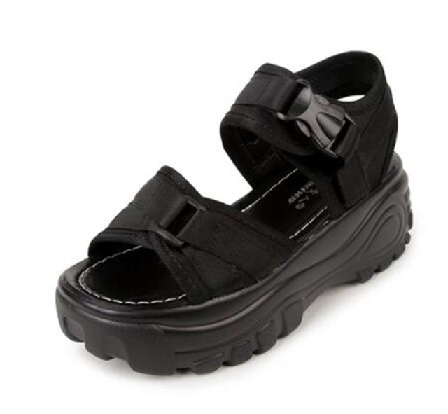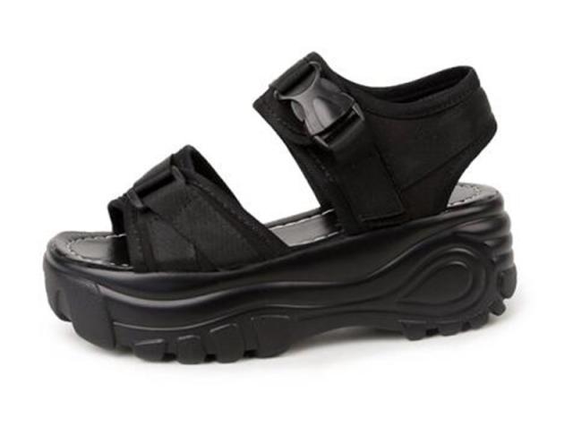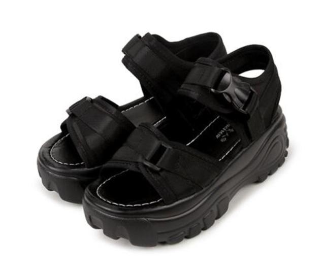 『すっきりとした足回りを魅せる厚底スポーツサンダル』