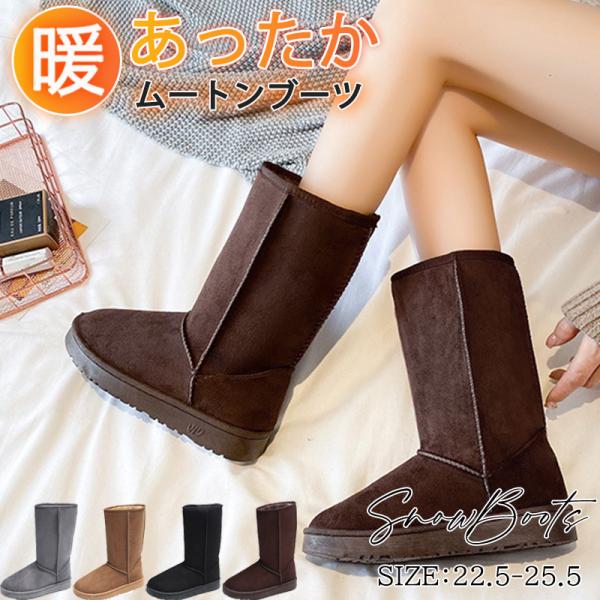 ムートンブーツ レディース スノーブーツ ロング ショートブーツ 高め 裏ボア 裏起毛 滑り止め フラット 暖か 防寒 防風 冬 婦人靴 おしゃれ