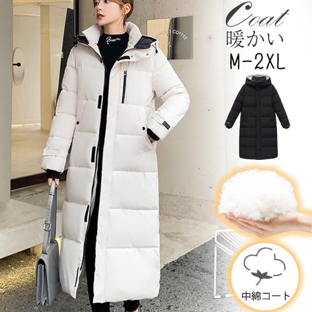 中綿コート レディース 中綿ジャケット ロングコート ロング丈 ベンチコート フード付き ダウンジャケット 厚手 アウター シンプル 防寒 通勤 通学