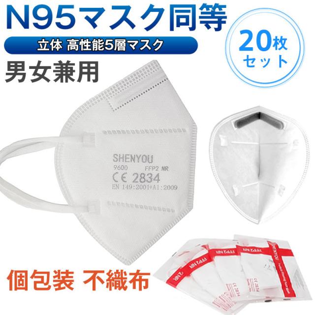 N95マスク同等 FFP2マスク KN95マスク 20枚セット 個包装 n95 kn99 不織布 立体 高性能5層マスク