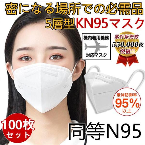 N95マスク同等 KN95マスク 100枚 使い捨て 3D立体 高性能5層マスク 不織布 男女兼用 防塵マスク 感染防止 業務 機内着用義務 肌に優しい オリンピックマスク