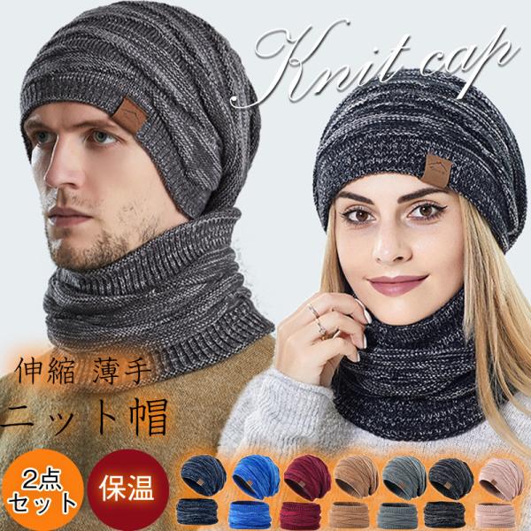 ニット帽 レディース スヌード 2点セット メンズ ビーニー ふわふわ スキー 無地 編み目 暖か 防寒 可愛い バイク 女の子 おしゃれ お出かけ