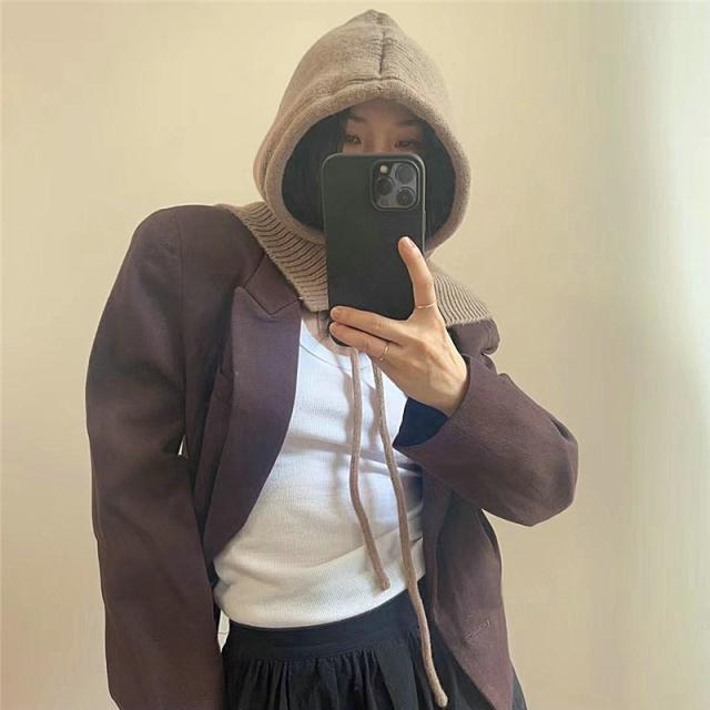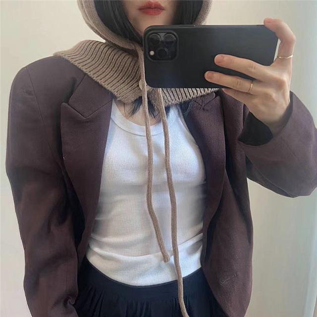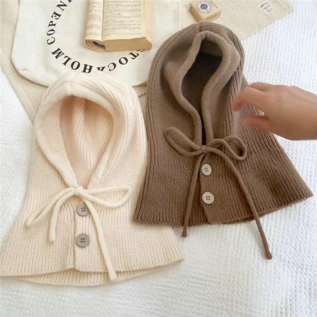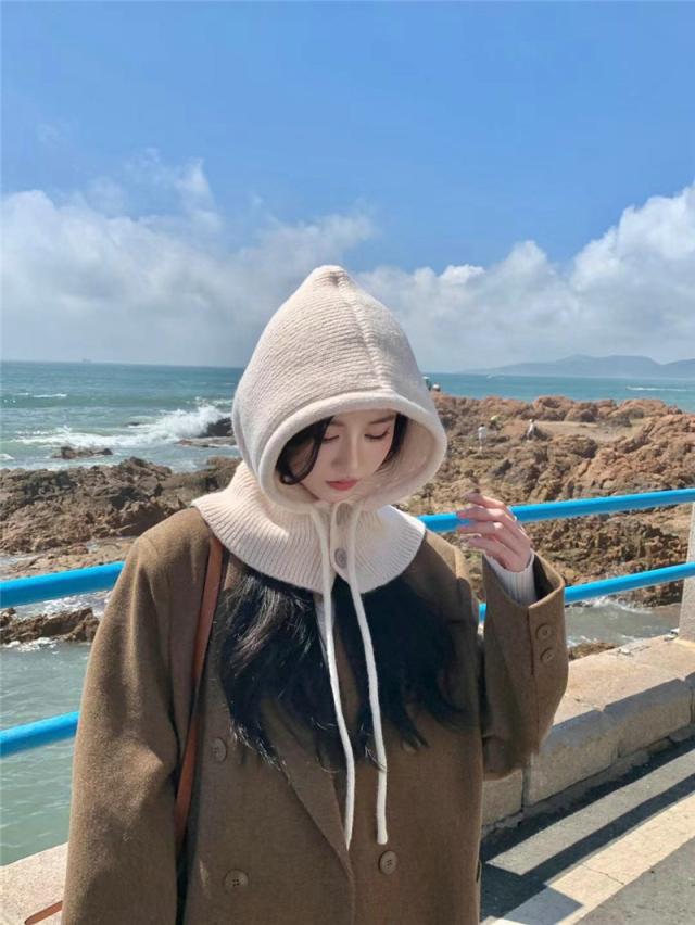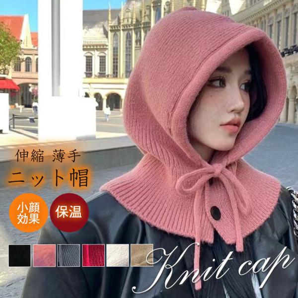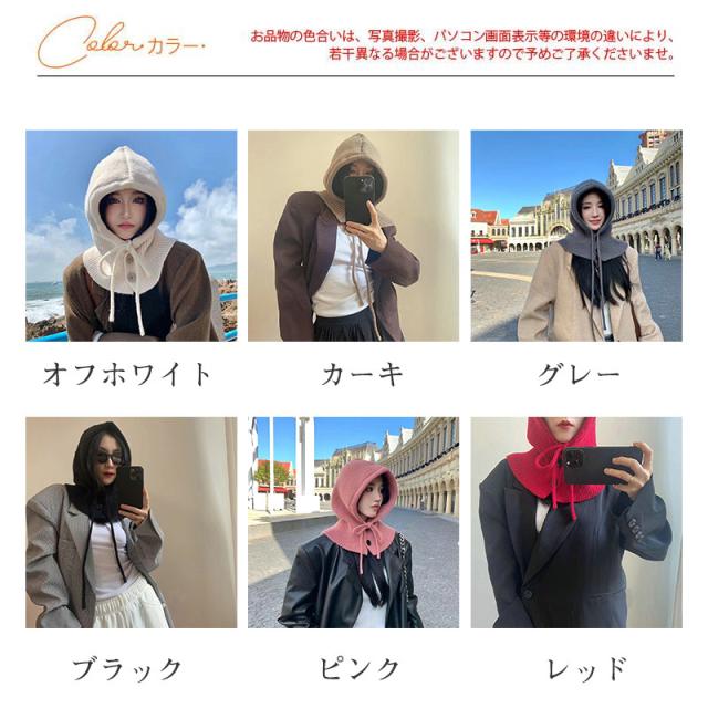 ニット帽 レディース フード 帽子 ずきん キャップ 紐付き ネックウォーマー 暖かい 防寒 防風 秋冬 小顔効果 可愛い パーカー 贈り物 韓国風