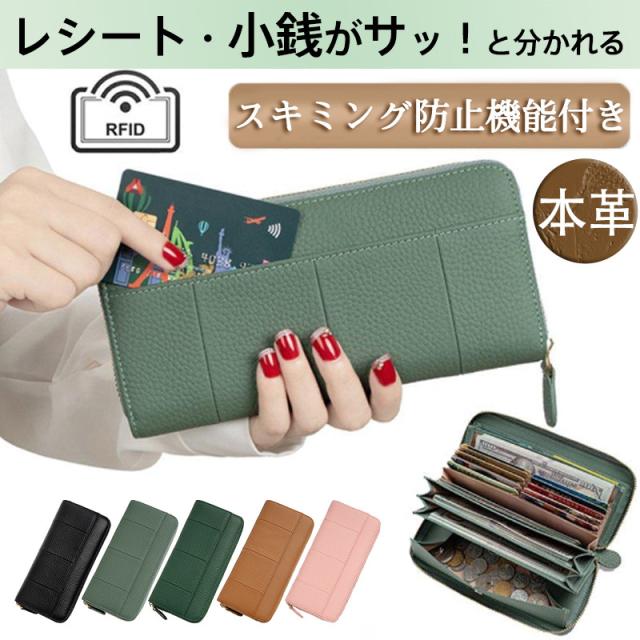 長財布 レディース 財布 じゃばら 本革 小銭入れ コインスルー カード入れ スキミング防止 大容量 ラウンドファスナー 上質牛革 多機能 緑