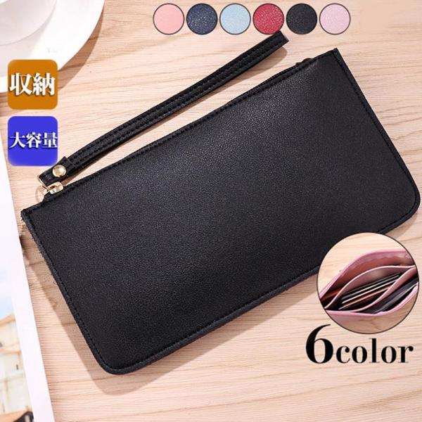 赤字覚悟 長財布 レディース 財布 ロングウォレット セカンドバッグ ダブルファスナー 無地 カラー配色 ストラップ付き 柔らか 可愛い 収納 贈り物