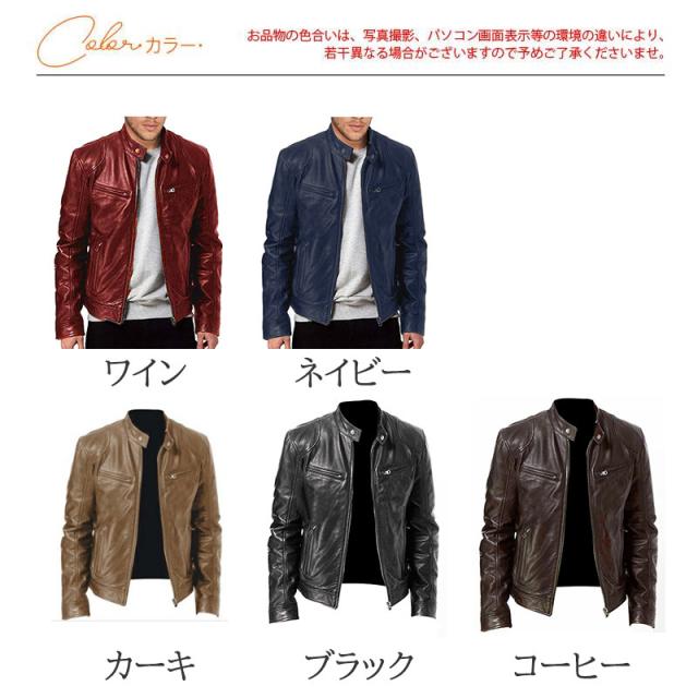 レザージャケット メンズ 革ジャン ライダースジャケット ジャケット ブルゾン アウター 大きいサイズ 細身 レトロ 立ち襟 着痩せ 紳士服 おしゃれ