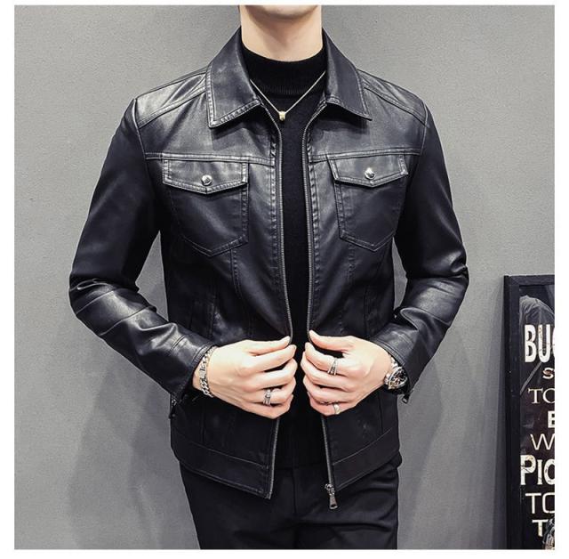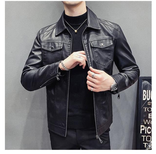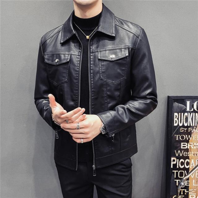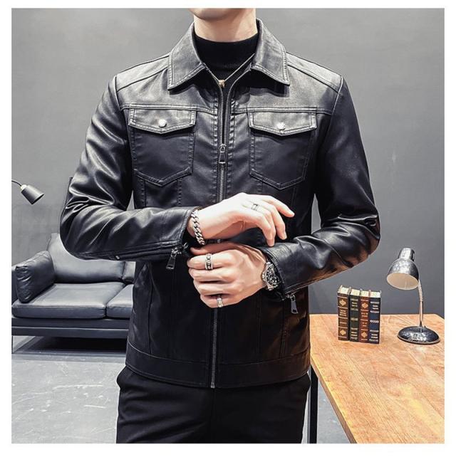 レザージャケット メンズ ライダースジャケット 革ジャン 秋冬 裏起毛 アウター 折り襟 防寒 防風 レザー 着痩せ かっこいい ロック系 韓国風