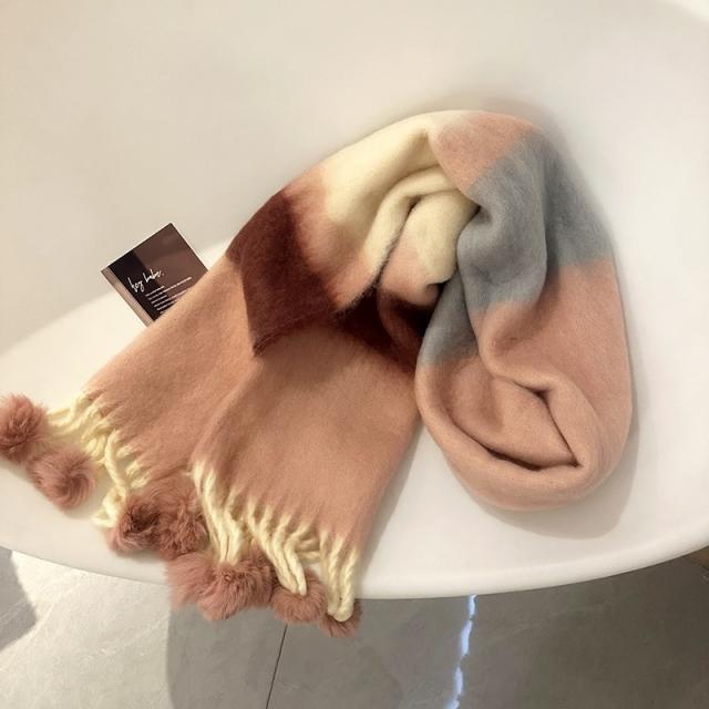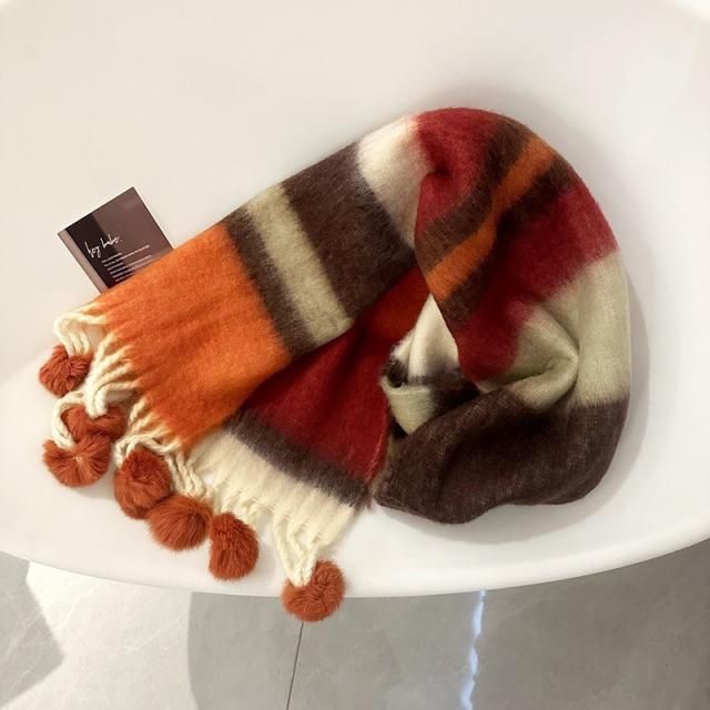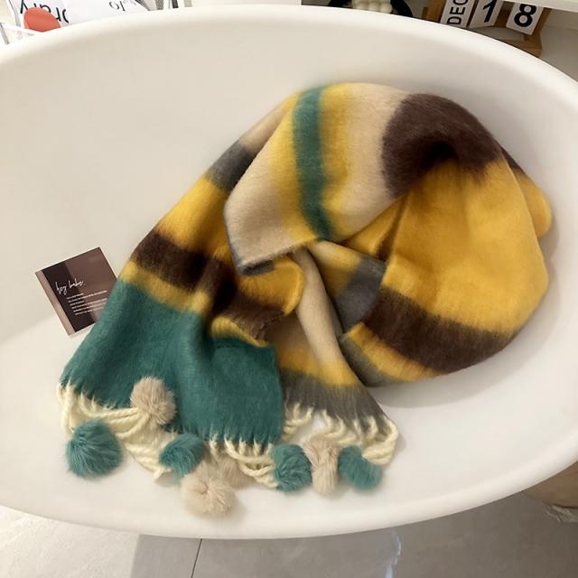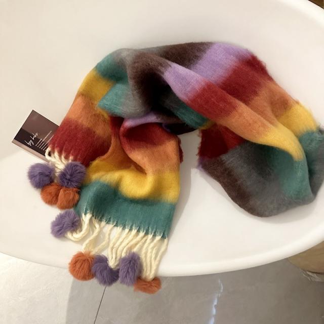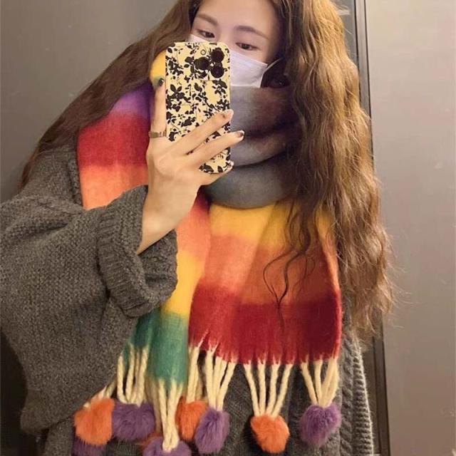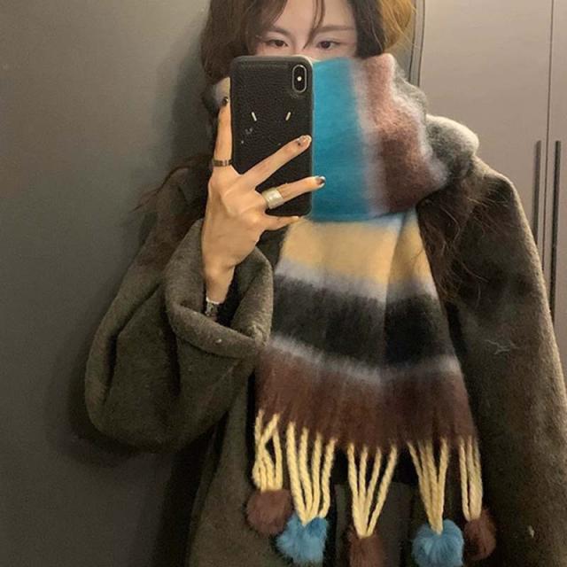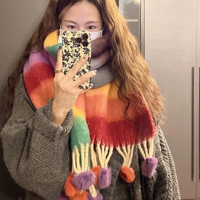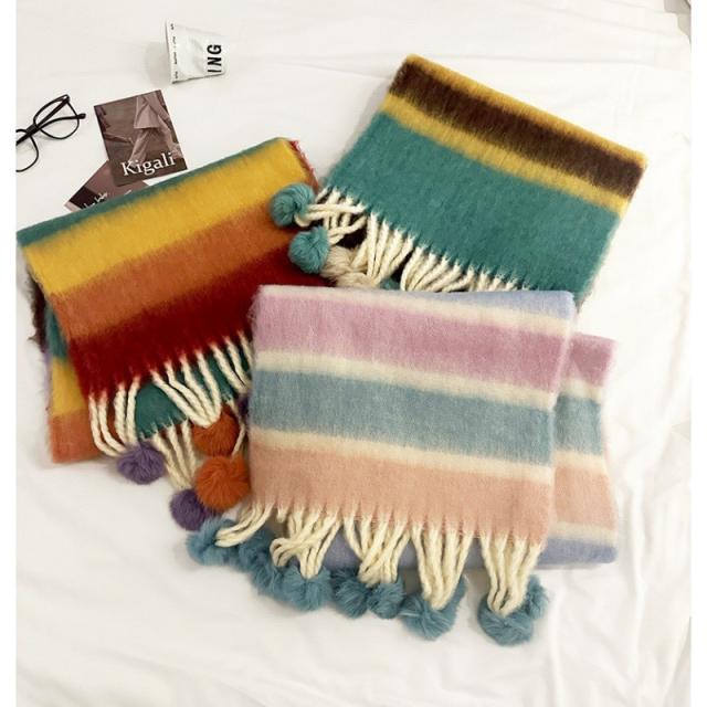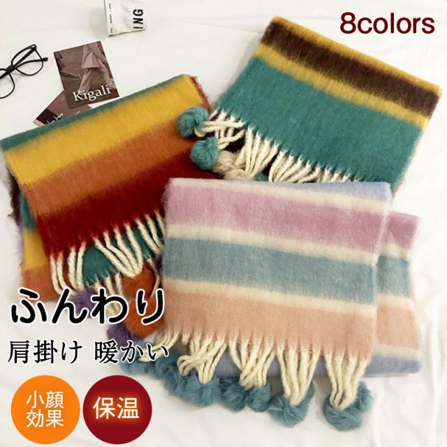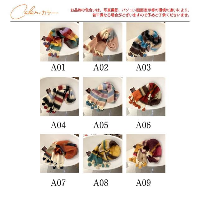 マフラー レディース ストール 大判 ショール フリンジ 厚手 柔らかい 肩掛け カラフル 暖かい 可愛い 防寒 肌触りいい 手作り 冬 通勤 韓国風