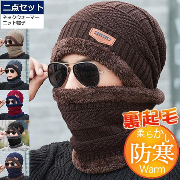 ニット帽 メンズ スヌードマフラー付き 裏起毛 2点セット ニットキャップ マフラー レディース 男女兼用 ネックウォーマー 防寒 セール 送料無料