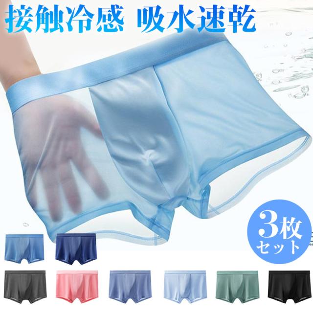ボクサーパンツ メンズ 3枚セット 接触冷感 吸水速乾 ボクサーブリーフ 下着 肌着 インナー アンダーウェア シームレスパンツ 抗菌 スポーツ 伸縮