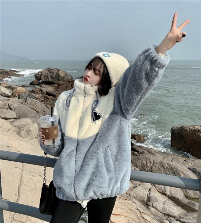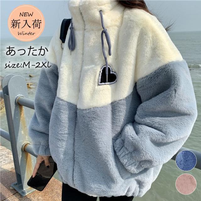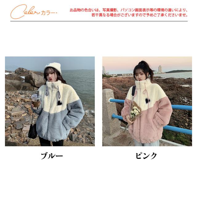 フリースジャケット レディース ボアジャケット ブルゾン アウター 立ち襟 切り替え もこもこ ゆったり 厚手 暖か 防寒 冬 通勤 おしゃれ 新作
