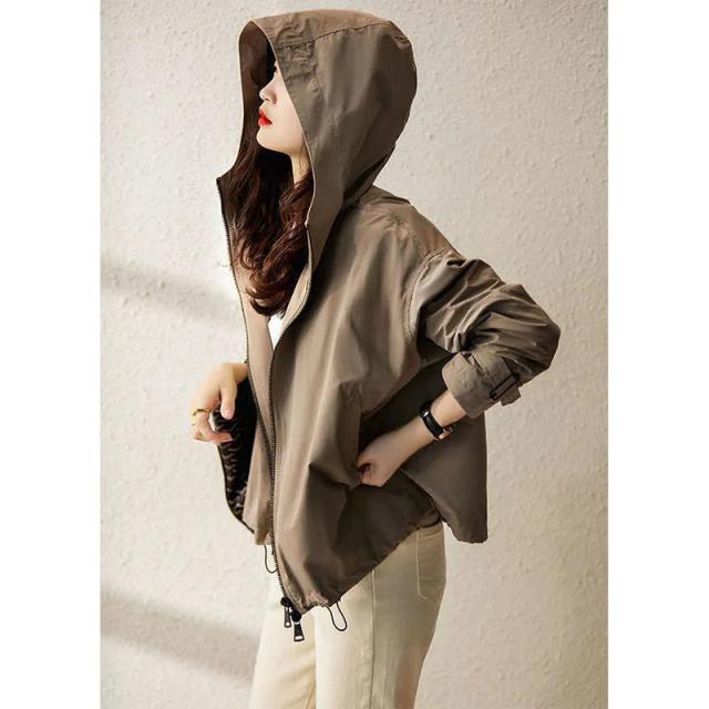 マウンテンパーカー レディース ウィンドブレーカー ブルゾン フード付き ジャケット アウター ゆったり 防風 軽量 韓国風 着痩せ 春秋 おしゃれ