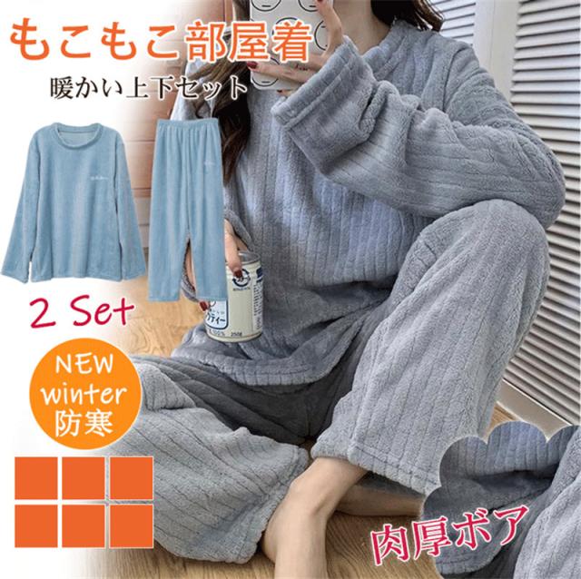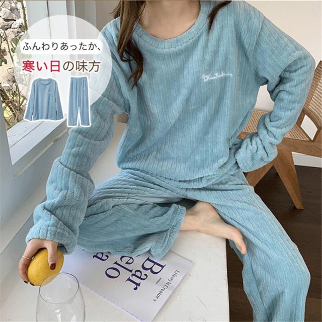 一部即納 パジャマ レディース ルームウェア 上下セット 人気 パジャマペア 寝巻き 部屋着 長袖 厚手 もこもこ 可愛い ふわふわ あったか 暖かい 冬 送料無料