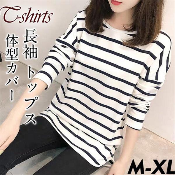 Tシャツ レディース 長袖 ロング丈 ストライプ 体型カバー ゆったり 大きいサイズ ブラウス 着痩せ 部屋着 春 夏 秋 おしゃれ 人気 送料無料