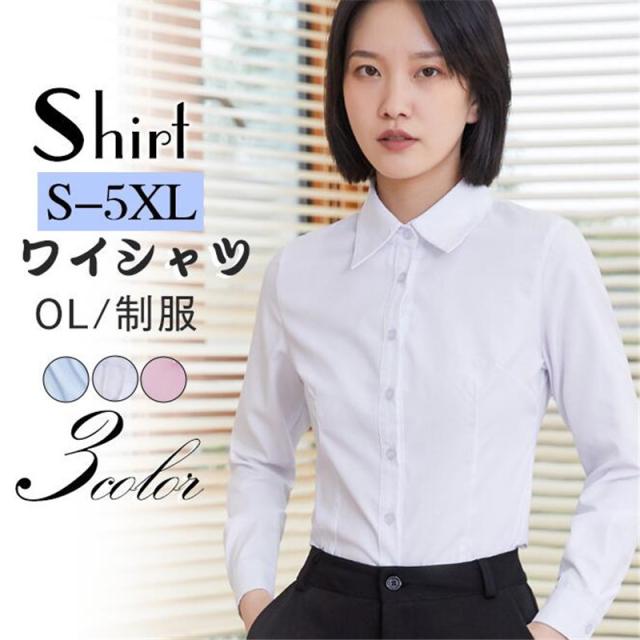 送料無料 ワイシャツ レディース シャツ 白シャツ ブラウス 長袖 ビジネス フォーマル ストレッチ オフィス ホワイト OL 制服 事務服 通勤