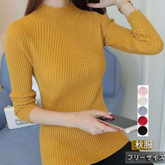 一部即納 ニットセーター レディース リブ タートルネック 長袖 インナー レース レイヤード カットソー 暖か 上着 フィット 着痩せ 通勤 韓国風 おしゃれ