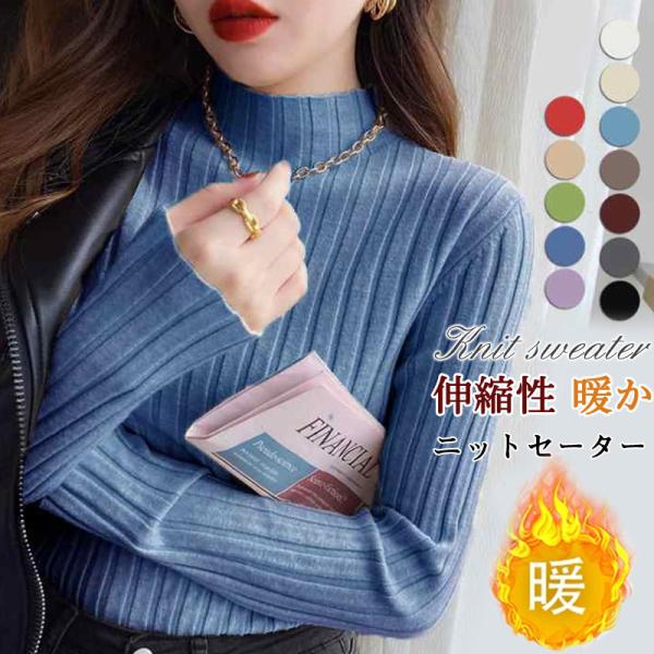 ニット セーター レディース リブニット 長袖 プチハイネック プルオーバー トップス インナー 無地 着痩せ お洒落 秋冬 シンプル 通勤 韓国風