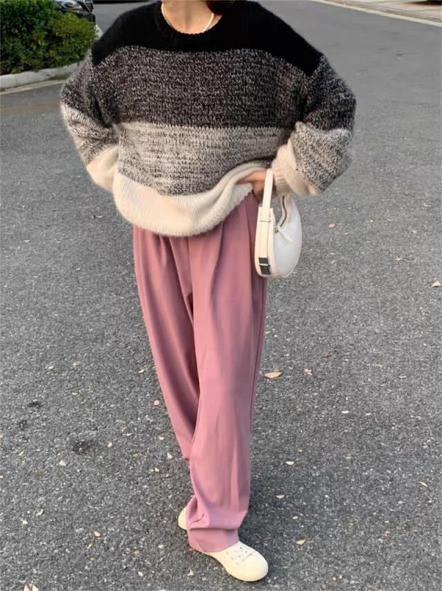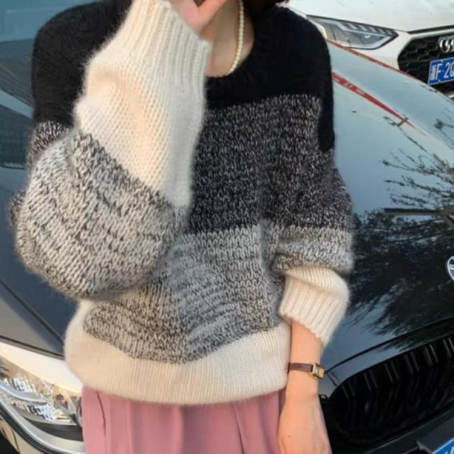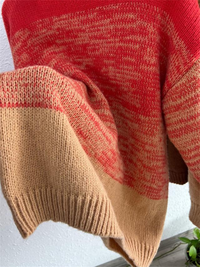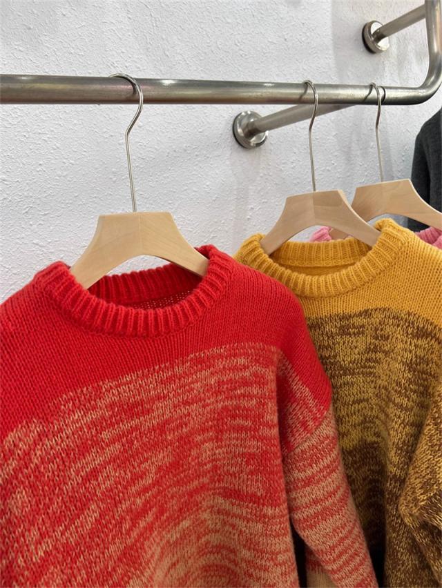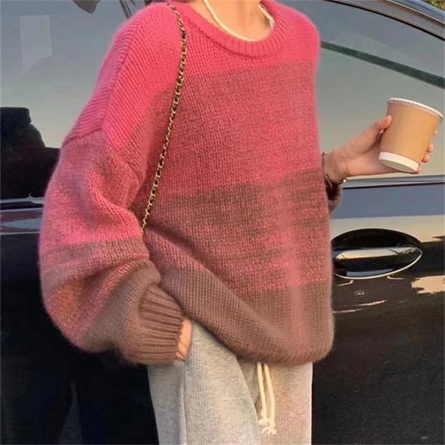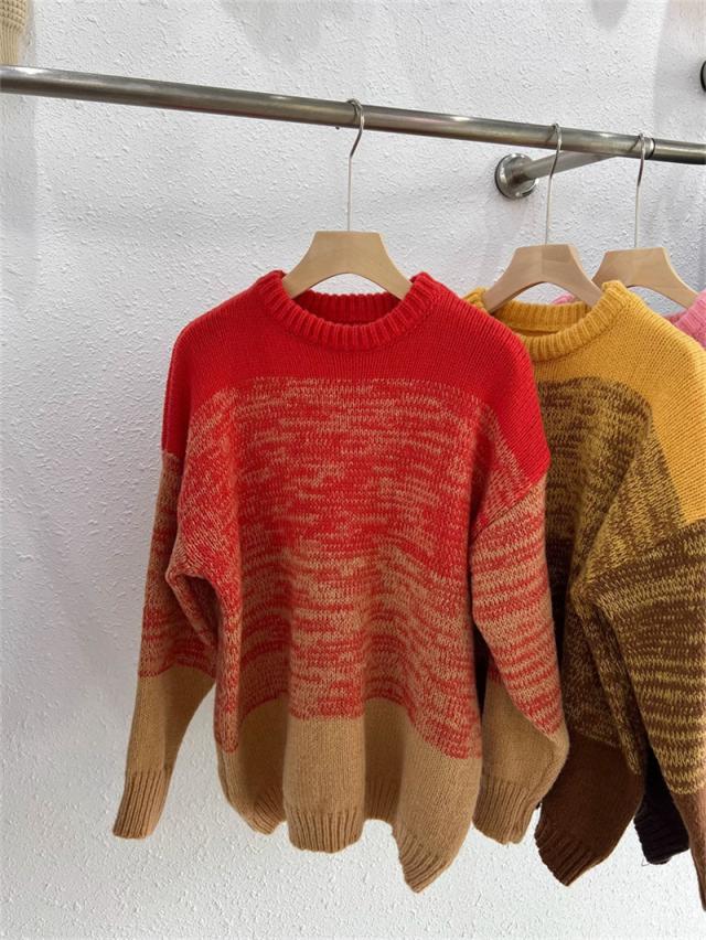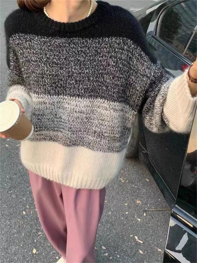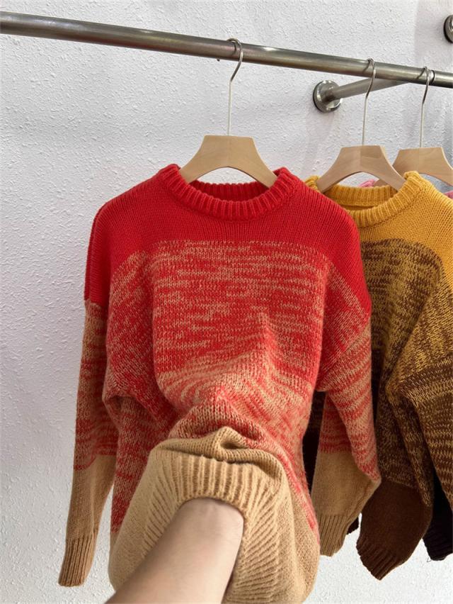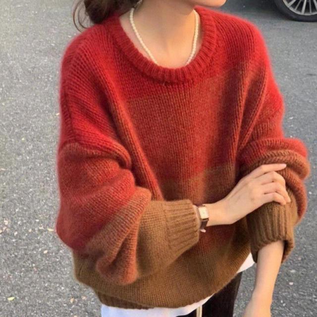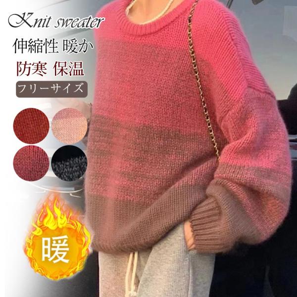 ニットセーター レディース ニット クルーネック グラデーション ざっくりニット プルオーバー 長袖 ゆったり ルーズ 暖か 防寒 秋冬 おしゃれ