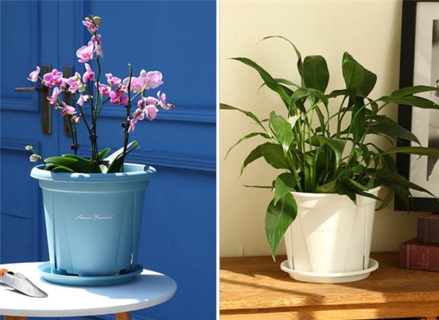 植木鉢 プランター プラ鉢 受け皿付き トレイ付き 12cm 5個入り 1L ソリッド 観葉植物鉢 多肉植物鉢 排水穴付き 北欧風 室内 庭 3色