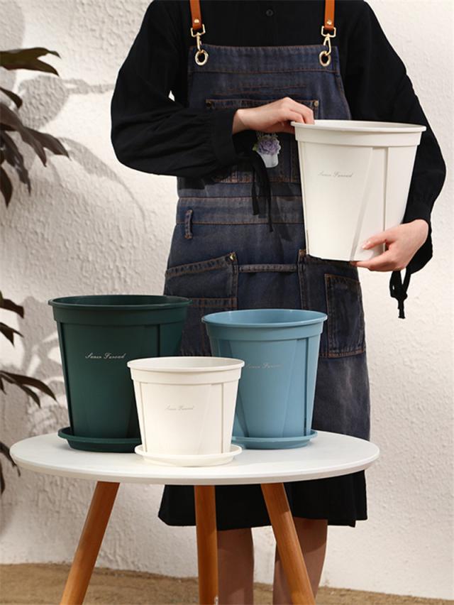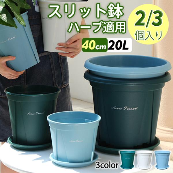 植木鉢 プランター プラ鉢 受け皿付き 40cm 2個入り 3個入り 20L 12号鉢 観葉植物鉢 排水穴付き 北欧風 室内 庭 3色 ソリッド