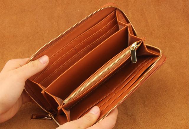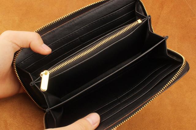 非常に軽く、手に吸い付くような手触りが特徴的なラウンドファスナータイプの長財布。