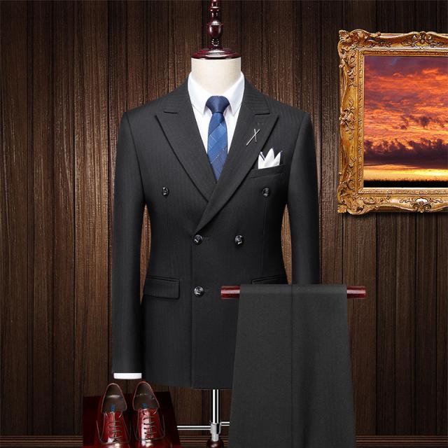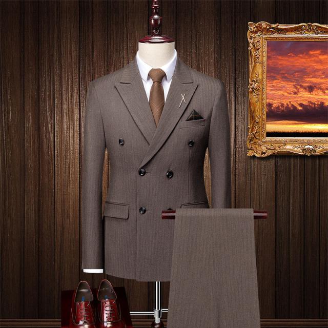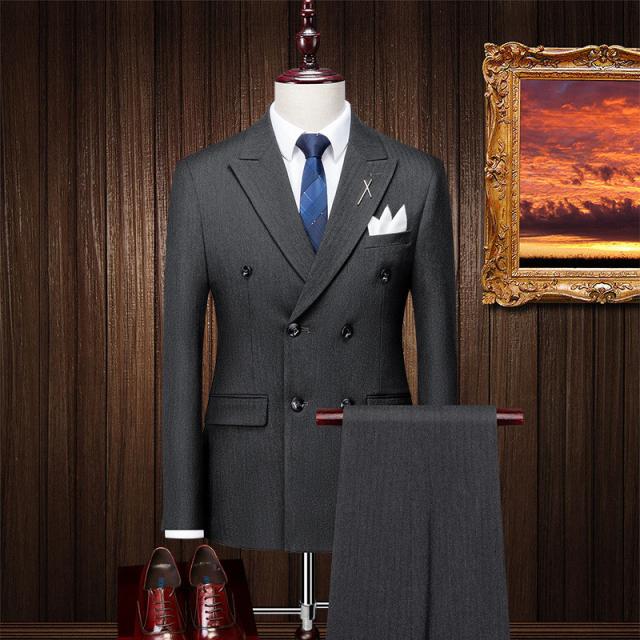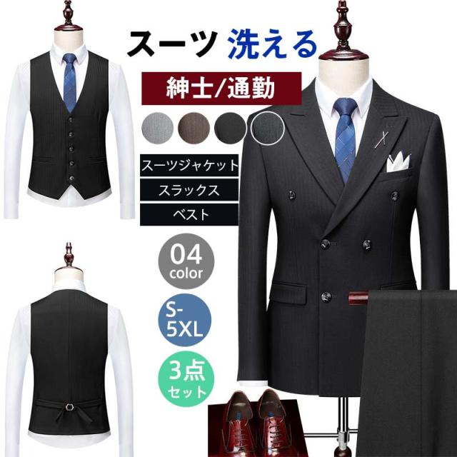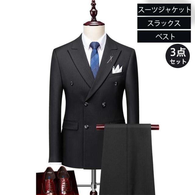 スーツ メンズ 上下セット 3点セット スリム テーラード ジャケット スラックス ジレベスト ダブルボタン ビジネス 細身 紳士 通勤 大人 韓国風