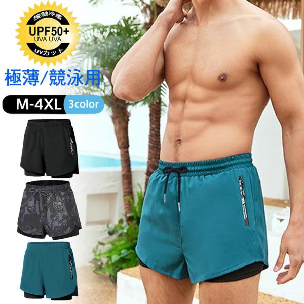 水着 メンズ サーフパンツ インナー付き 水陸両用 海パン フェイクレイヤード 速乾 男性用 短パン ショートパンツ ボードショーツ ゆったり 温泉