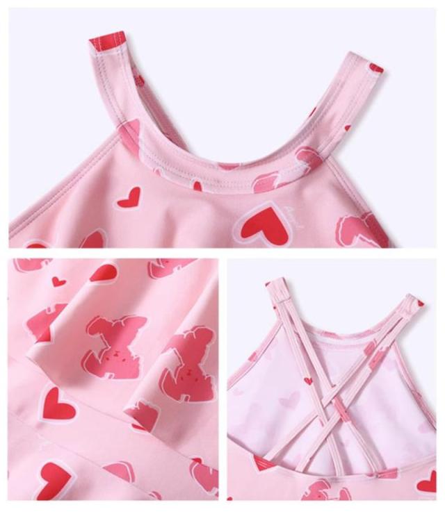 水着 キッズ 子供 ワンピース 水着セット 女の子 ハイネック スイミング ジュニア オールインワン 胸パッド ショーツ 速乾 総柄 小学生 可愛い