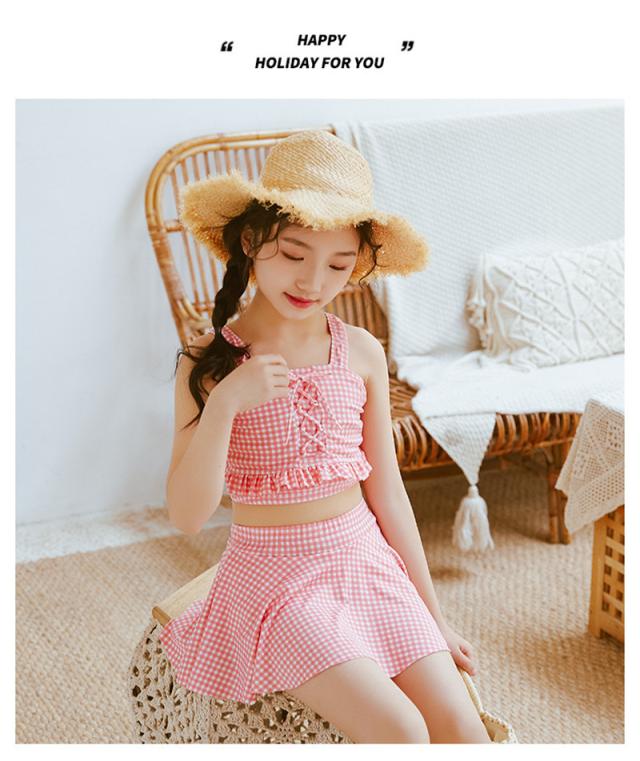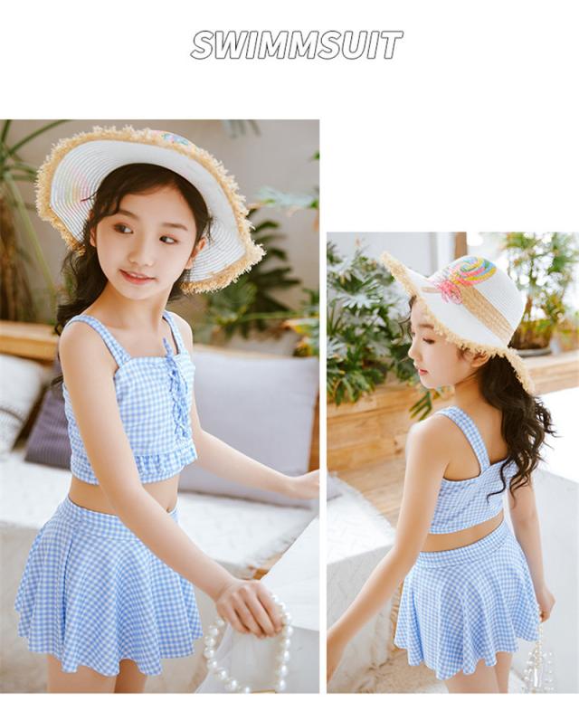 水着 キッズ 子供 セパレート 水着セット 上下 女の子 スカート スイミング 2点セット ジュニア チェック柄 速乾 小学生 温泉 プール 可愛い
