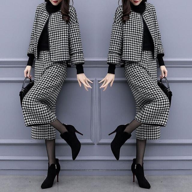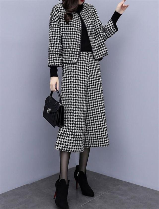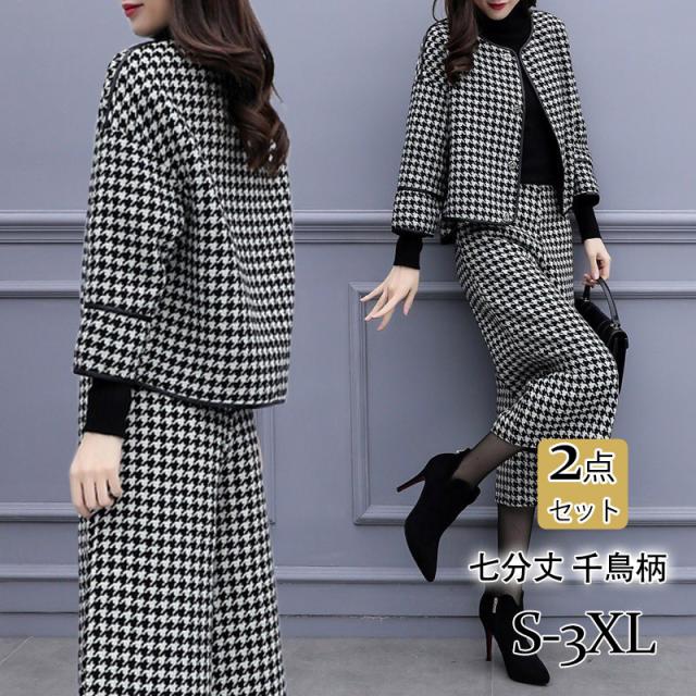スーツ パンツスーツ レディース フォーマル テーラードジャケット セレモニースーツ ガウチョパンツ 七分丈 千鳥柄 ビジネス OL 通勤 おしゃれ