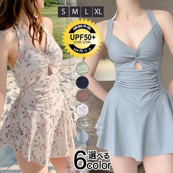 水着 レディース ワンピース水着 オールインワン ハイウエスト 胸パッド付 ビーチウェア スイミング 無地 花柄 セクシー 着痩せ プール 夏 セール
