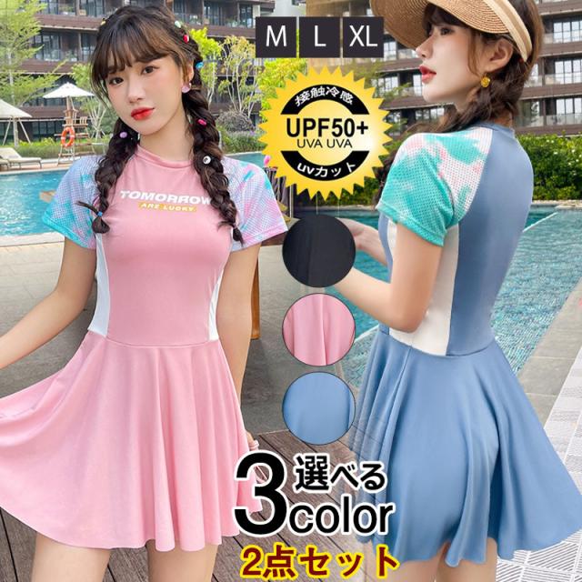 水着 レディース ワンピース水着 体型カバー 2点セット スイムウェア ビーチウェア 着痩せ スクール水着 プール 旅行 温泉 学生 可愛い オシャレ